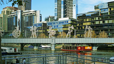 The sculptures on the Sandridge Bridge are referred to as the Travellers