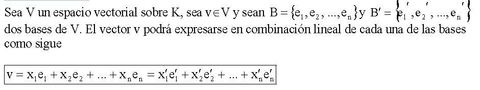 | Ecuación matricial del cambio de base | |