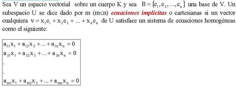| Determinación de un subespacio: Ecuaciones Implícitas | |
