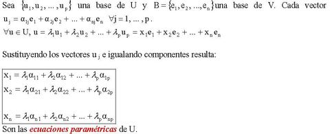 | Determinación de un subespacio: Ecuaciones Paramétricas | |