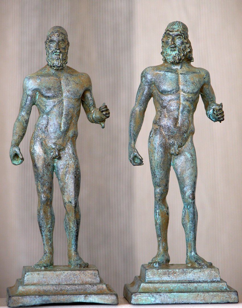 | Guerrers de Riace | Autor: Anònim Cronología: 460 - 430 a.C. Tipología: Escultura exempta Estil: Grec clàssic Tècnica: Fosa Material: Bronze Mides: 2 m Ubicació: Museo Nazionale di Reggio, Calàbria |