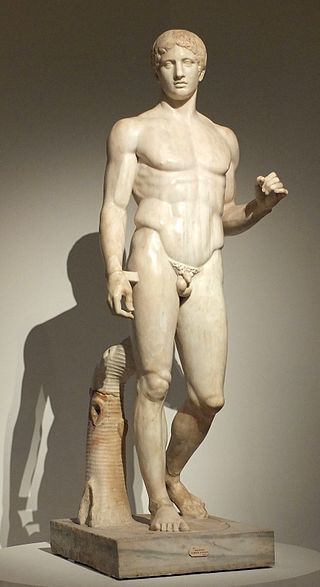 | Dorífor | Autor: Policlet Cronología: 430 a.C. Tipología: Escultura exempta Estil: Grec clàssic Tècnica: fosa a la cera perduda Material: Bronze Mides: 2,15 m Ubicació: Museo Archeologico Nazionale, Nàpols |