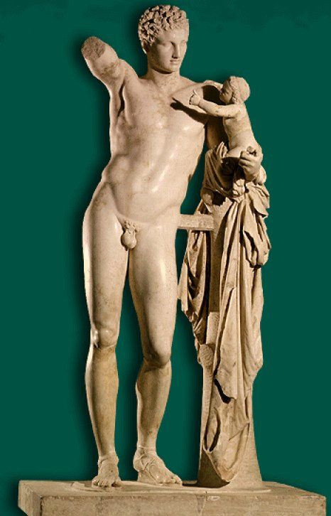 Autor: Praxíteles Cronología: 350 - 330 a.C. Tipología: Escultura Exempta Estil: Grec Clàssic Tècnica: Talla Material: Marbre Mides: 2,13 m Ubicació: Museu Arqueològic, d’Olímpia |