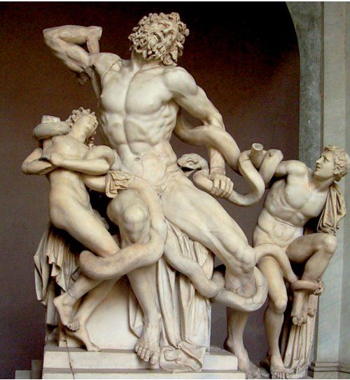 Autor: Agesandre, Polidor i Atenodor Cronología: S. II a.C. Tipología: Escultura exempta Estil: Grec Helenistic Tècnica: Talla i trepanat Material: Bronze Mides: 1,84m x 2,42m Ubicació: Pati de Bellvedere, Museus Vaticans, Roma |