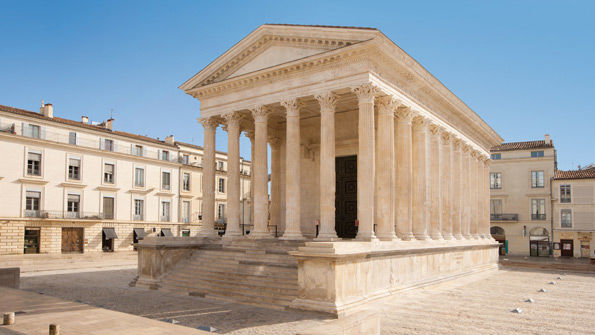 | Maison Carré | Autor: Anònim Cronología: 16 a.C. Tipología: Arquitectura, Temple Estil: Romà Imperial Tècnica: Arquitravat Material: Pedra calcària blanca Mides: 14m x 28m Ubicació: Nimes, França |