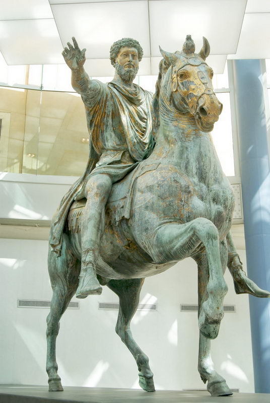 | Retrat Eqüestre de Marc Aureli | Autor: Anònim Cronología: 176 d.C. Tipología: Escultura exempta Estil: Romà Imperial Tècnica: Fosa perduda Material: Bronze daurat Mides: 4,24 m Ubicació: Palazzo del Conservatori, al Museu Capitulí de Roma |