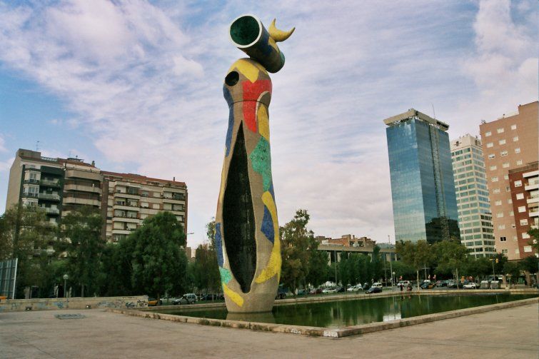 | Dona i ocell | Autor: Joan Miró Cronología: 1983 Tipología: Escultura exempta Estil: Surrealista Material: Ciment, recobert de trencadís de colors Mides: 22m alçada Ubicació: Barcelona |