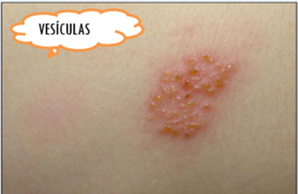 Pequeñisimas elevaciones de la epidermis en forma de pequeñas bolsitas llenas de líquido seroso, evolucionan a costras y, por lo general, no dejan manchas ni cicatrices. |