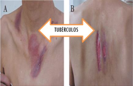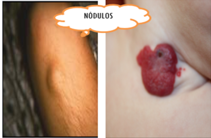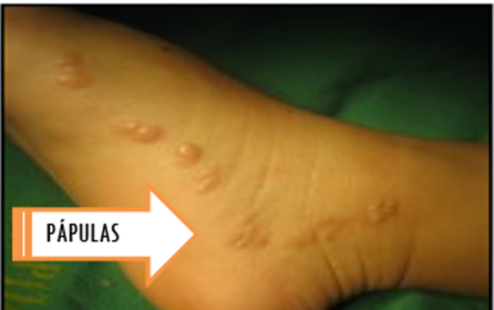 Eminencias pequeñas sólidas ubicadas en la superficie cutánea; cuando se resuelven dejan cicatrices por infiltración dérmica. |