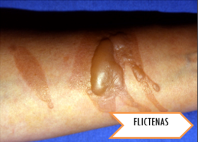 Ampollas epidérmicas de mayor tamaño que contienen suero, como las que se evidencian en las quemaduras. |