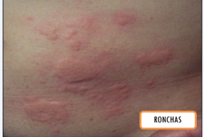 Pequeñas zonas de edema de la piel, caracterizadas por elevaciones superficiales, circunscritas y pasajeras que producen gran prurito (picazón). Se presentan por alergias a medicamentos, medios físicos, comidas, entre otros. |