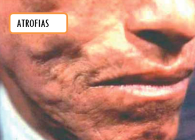 | DEFICIENCIAS SECUNDARIAS DE LA PIEL | ESCAMAS. COSTRAS. SOLUCIÓN DE CONTINUIDAD DEL TEJIDO CUTÁNEO. CICATRICES. ATROFIAS. ESCLEROSIS. XERODERMIA. ESTRÍAS. QUERATODERMIA. |