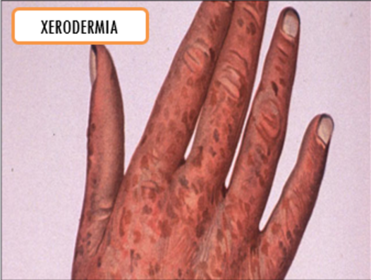 Deficiencia caracterizada por la rugosidad y sequedad de la piel; con un incremento de la capa córnea y disminución de la secreción de las glándulas sebàceas y sudorìparas. |