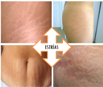 Líneas claras que aparecen en la piel como producto de desgarros subcutáneos, debidos a estiramientos prolongados como los sufridos en la piel del abdomen durante el periodo de embarazo. |