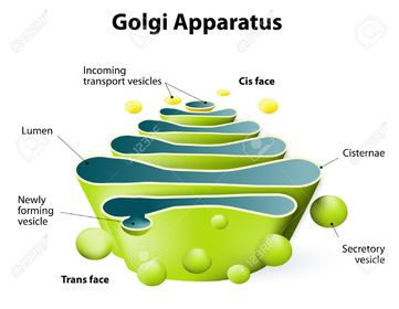 | APARATO DE GOLGI | Es una pila de sacos aplanados y membranosos que están rodeados de pequeñas vesículas. Función: empaquetar y etiquetar sustancias fabricadas en el Retículo. Función secretora (ya que secreta estas sustancias al exterior). |