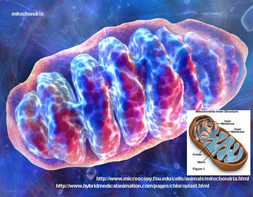 | MITOCONDRIA | Tiene forma ovalada y posee una doble membrana que delimita una matriz interior y unas crestas mitocondriales. Tiene una función muy importante ya que es el encargado de proporcionar energía a la célula. En ellas se realiza la RESPIRACIÓN CELULAR, que necesita O2 |