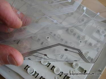 Un Teclado de computadora esta formado por tres capas plásticas; en la superior e inferior, están grabados todos los contactos que se necesitan; la lamina intermedia tiene perforaciones las cuales coinciden con la posición de un determinado interruptor que acciona una tecla. |