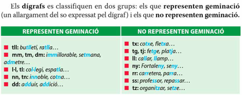 Què és la geminació? | És l'allargament del so expressat pel dígraf |