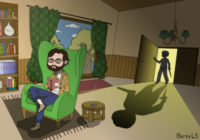Una vez allí se prepara para apuñalar al marido de su amada, que según la descripción de la escena es el lector de la novela | TEMAS El tema más destacado es la pasión desgarradora que empuja al amante a llevar a cabo el asesinato del marido de la mujer para poder dejar de verse a escondidas. También existen otros temas, como son el crimen, la frialdad y, por supuesto, el amor. |