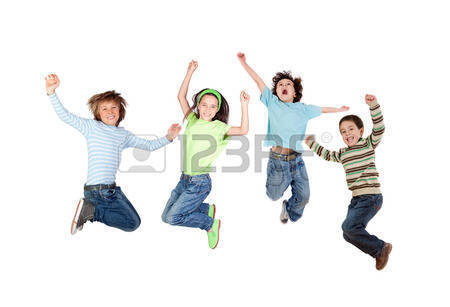 25511691 Cuatro Niños Alegres Saltando Aislados Sobre Un Fondo Blanco (image/jpeg)