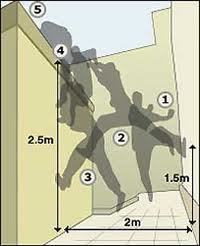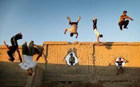 Parkour: proviene de "parcours" que significa "recorrido" en francés. "Les parcours du combattant "son recorridos de obstáculos para entrenamiento de militares y en algunos casos para los bomberos, también conocido como un arte marcial o también como deporte. |