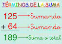 Los términos de la suma, a y b, se llaman sumandos y el resultado, c, suma