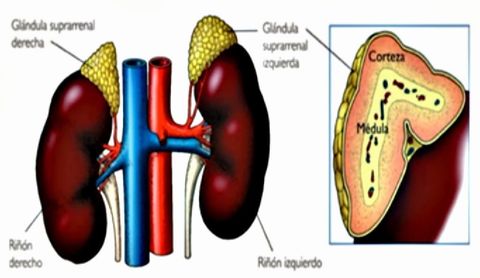 Regula la respuesta al estrés. Segrega las siguientes hormonas: - Aldosterona: controla el equilibrio y sales minerales. - Cortisol: incrementa el nivel de glucosa en la sangre, ayuda al metabolismo de grasas, proteínas y carbohidratos como respuesta al estrés. - Adrenalina: Prepara el organismo para una situación de emergencia. |