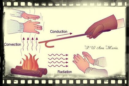 | Ejemplo de las formas de transmisión de calor | El atizador se calienta mediante el proceso de conducción (está en contacto con la fuente de calor). Las manos que están encima de la braza sentirá el calor que se conduce por convección. Las manos que se calientan al lado derecho reciben el calor que se transfiere por radiación. |