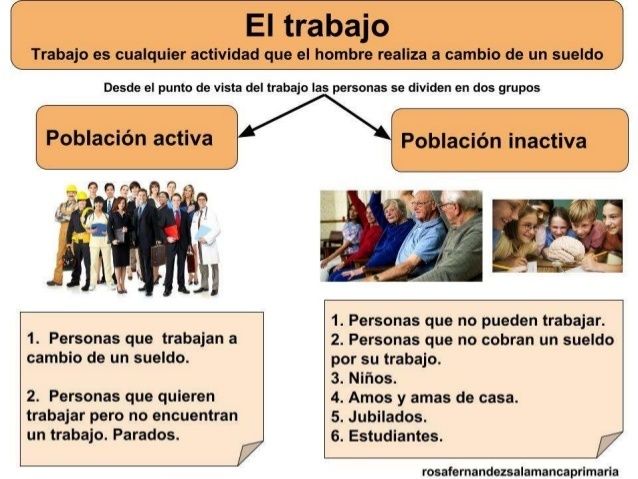 | POBLACIÓN ACTIVA | Son las personas que pueden trabajar. OCUPADOS: trabajan PARADOS: buscan trabajo |