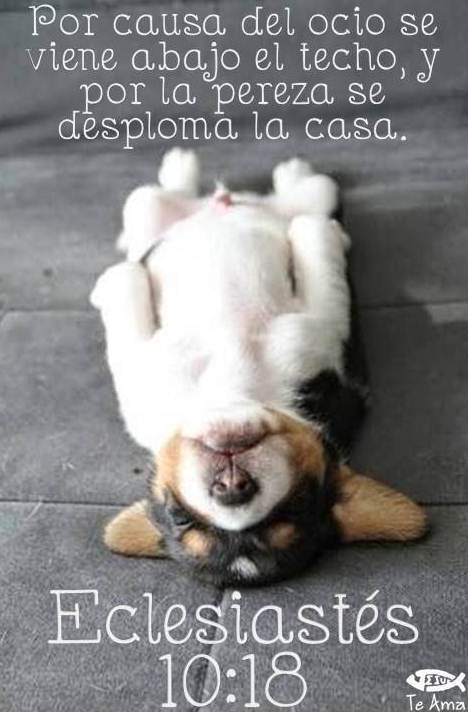 | Cap. 10 10.8 El que cava un hoyo, en él se cae; al que resquebraja un muro, lo muerde una serpiente. 10.18 Por la pereza se viene abajo el techo; por la flojera se viene abajo la casa. | Es importante esforzarnos, es un continuo mensaje de Salomon, en este pasaje nos dice que hay mucho que son inteligentes y tienen sabiduría pero aun así no logran superarse y es por la pereza. Así que hagamos algo para realizar nuestros sueños. |