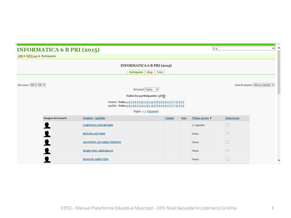 Desde el portal de la plataforma para incluir datos de presentación e información general de cada uno de los participantes en el curso |