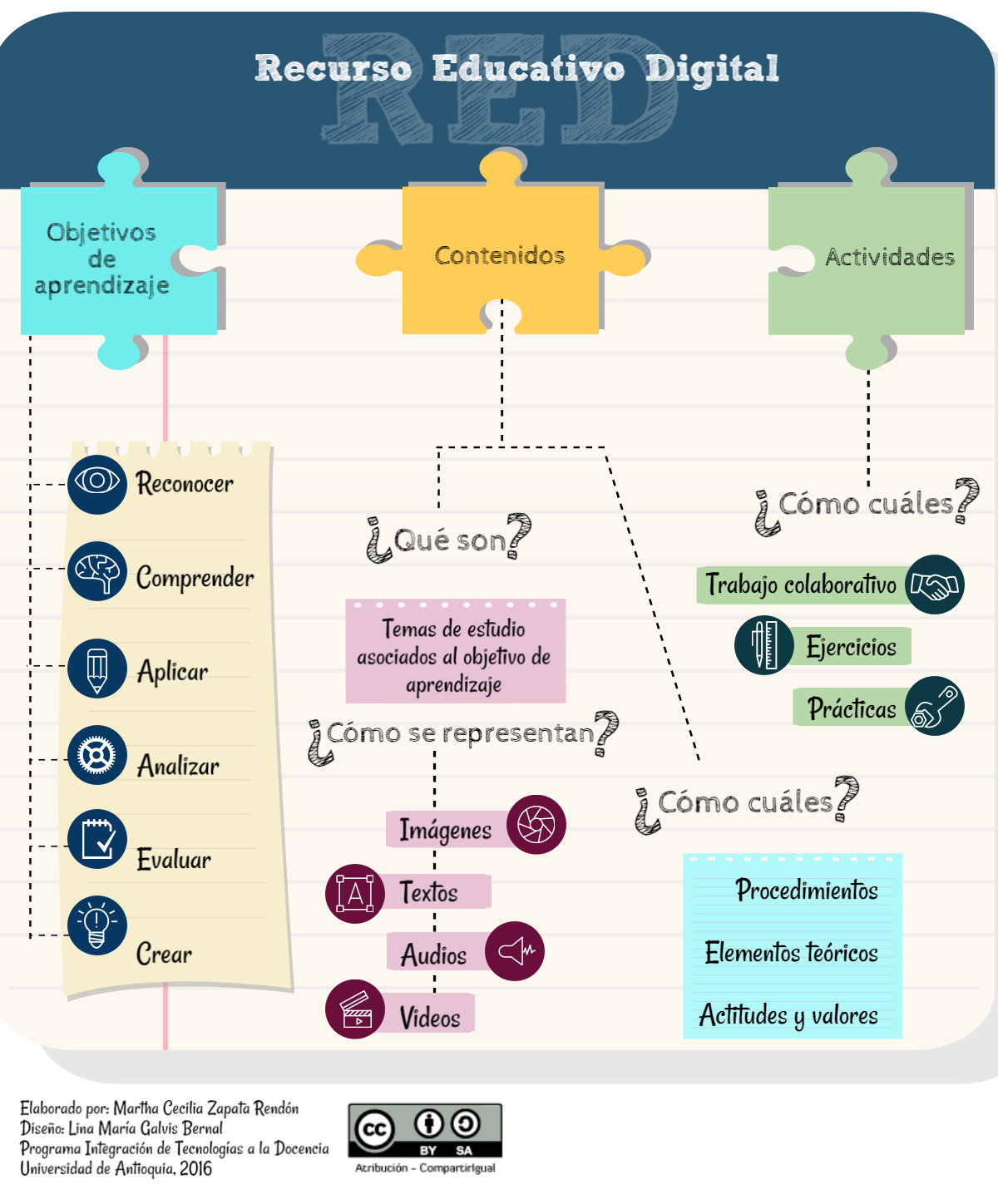 Materiales o productos que contienen información para el desarrollo de los temas y subtemas (presentaciones, enlaces, sitios de interés, tareas, evaluaciones). |