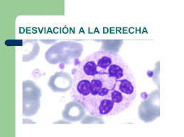 1.6 a la derecha: Corresponde a la hipersegmentacion nuclear, ocurre en anemia perniciosa, leucemias mieloides afecciones hepáticas y hipersegmentacion constitucional hereditaria. (Rodak, 2004). Imagen Recuperada de: http://quimicaclinicauv.blogspot.com/2006/10/desviacin-laderecha-de-leucocitos.html