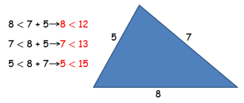 | PRIMERA REGLA "Para que un triángulo exista, la medida de CADA UNO de sus lados debe ser menor que la suma de los otros dos" |