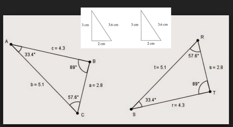 | CRITERIO LAL: DOS TRIÁNGULOS SON IGUALES SI LAS MEDIDAS DE DOS DE SUS LADOS SON IGUALES Y ÉSTOS COMPARTEN UN ÁNGULO DE LA MISMA MEDIDA | |