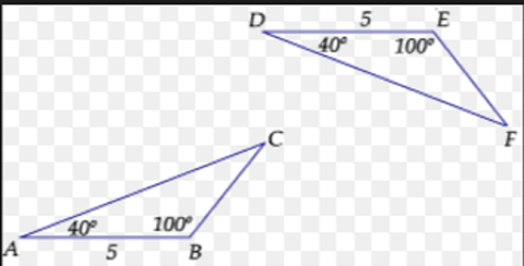 | CRITERIO ALA: DOS TRIÁNGULOS SON IGUALES SI TIENEN DOS ÁNGULOS IGUALES Y EL LADO ENTRE ELLOS MIDE LO MISMO |
