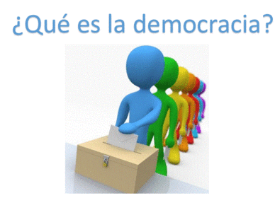 | 1. El poder ejercido por el pueblo (del griego: demos = pueblo, y kratos = poder) 2. El gobierno de muchos o de todos (Según Aristóteles) 3. El derecho a elegir a los representantes mediante el voto (Sentido moderno) | |