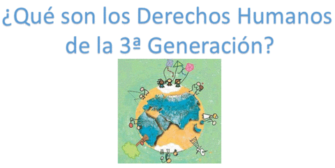 Este grupo de derechos fue promovido a partir de 1970 para incentivar el progreso social y elevar el nivel de vida de todos los pueblos, en un marco de respeto y colaboración mutua entre las distintas naciones de la comunidad internacional. Entre otros, destacan los relacionados con: Autodeterminación de los pueblos, la paz y el cuidado al medio ambiente |