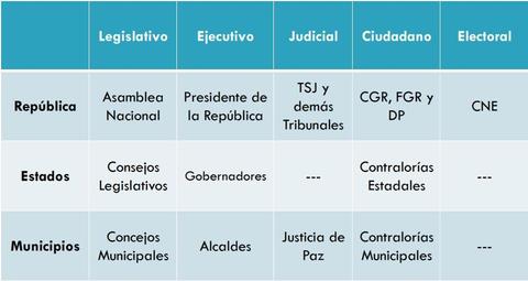 | La AP desde la perspectiva de la distribución horizontal | • Poder Legislativo. • Poder Ejecutivo. • Poder Judicial. • Poder Ciudadano. • Poder Electoral |