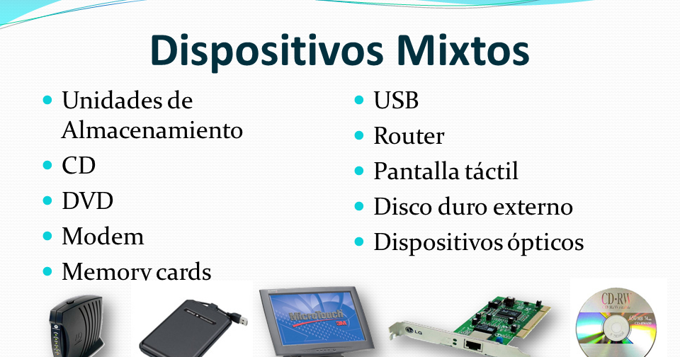 La Pantalla táctil (no el monitor clásico) es un dispositivo que se considera mixto, ya que además de mostrar información y datos (salida) puede actuar como un dispositivo de entrada de datos (reemplazando, por ejemplo, las funciones del mouse).
