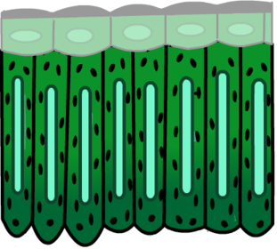 Tejido que realiza la fotosíntesis al proporcionar alimento a la planta, su morfología es alargada. |