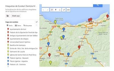 | Eureka! Zientzia Museoko lorategiko miniatureen eraikin berezien kokapen geografikoa Gipuzkoan. |