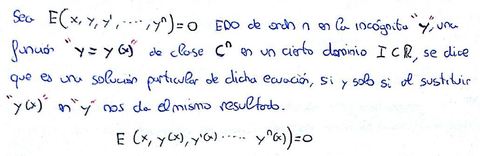 Solución singular | Se llama solución singular a cualquier solución particular de la ecuación que no se pueda deducir a partir de su solución general. |