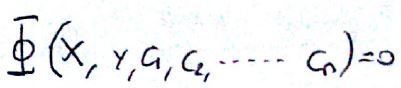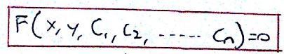 Interpretar una función n-paramétrica de curvas como una solución general de una ecuación de orden n | Bastará con eliminar los parámetros C1,C2,...,Cn a partir de la expresión dada y de las "n" derivadas sucesivas respecto de la variable "x" |