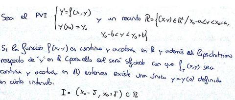 Teorema de existencia y unicidad de solucion (teroema de Picard) | |