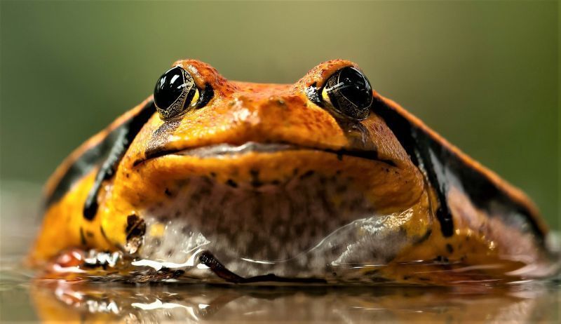 Los anuros, son un grupo de anfibios con rango taxonómico de orden, conocidos vulgarmente como ranas y sapos. Los adultos se caracterizan por carecer de cola, por presentar un cuerpo corto y muy ensanchado, y unas patas posteriores muy desarrolladas y adaptadas para el salto. |