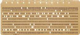 | ¿Qué es esto? | La tarjeta perforada o simplemente tarjeta es una lámina hecha de cartulina que contiene información en forma de perforaciones según un código binario. Estos fueron los primeros medios utilizados para ingresar información e instrucciones a una computadora en los años 1960 y 1970. |