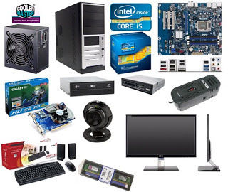 incluye las partes o componentes físicos y tangibles de una computadora , como el gabinete , la unidad central de procesamiento , el monitor , el teclado , el almacenamiento de datos de la computadora , la tarjeta gráfica , la tarjeta de sonido , los altavoces y la placa base |