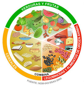 | Los tres grupos son: verduras y frutas, cereales, y leguminosas y alimentos de origen animal. | El Plato del Bien Comer forma parte de la Norma Oficial Mexicana para la promoción y educación para la salud en materia alimentaria, la cual da los criterios para la orientación alimentaria. |