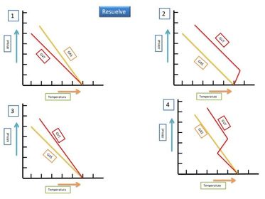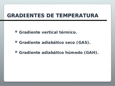 | Cuando una masa de aire asciende, se enfría según el GAS hasta que se satura formando una nube que, al ascender se enfría según el GAH. | GRADIENTE VERTICAL DE Tª (GVT).Disminución de la tª en la troposfera con la altura(6,5ºC/Km, como media). El gradiente real, en un lugar y momentos concretos es muy variable y a menudo no uniforme. |